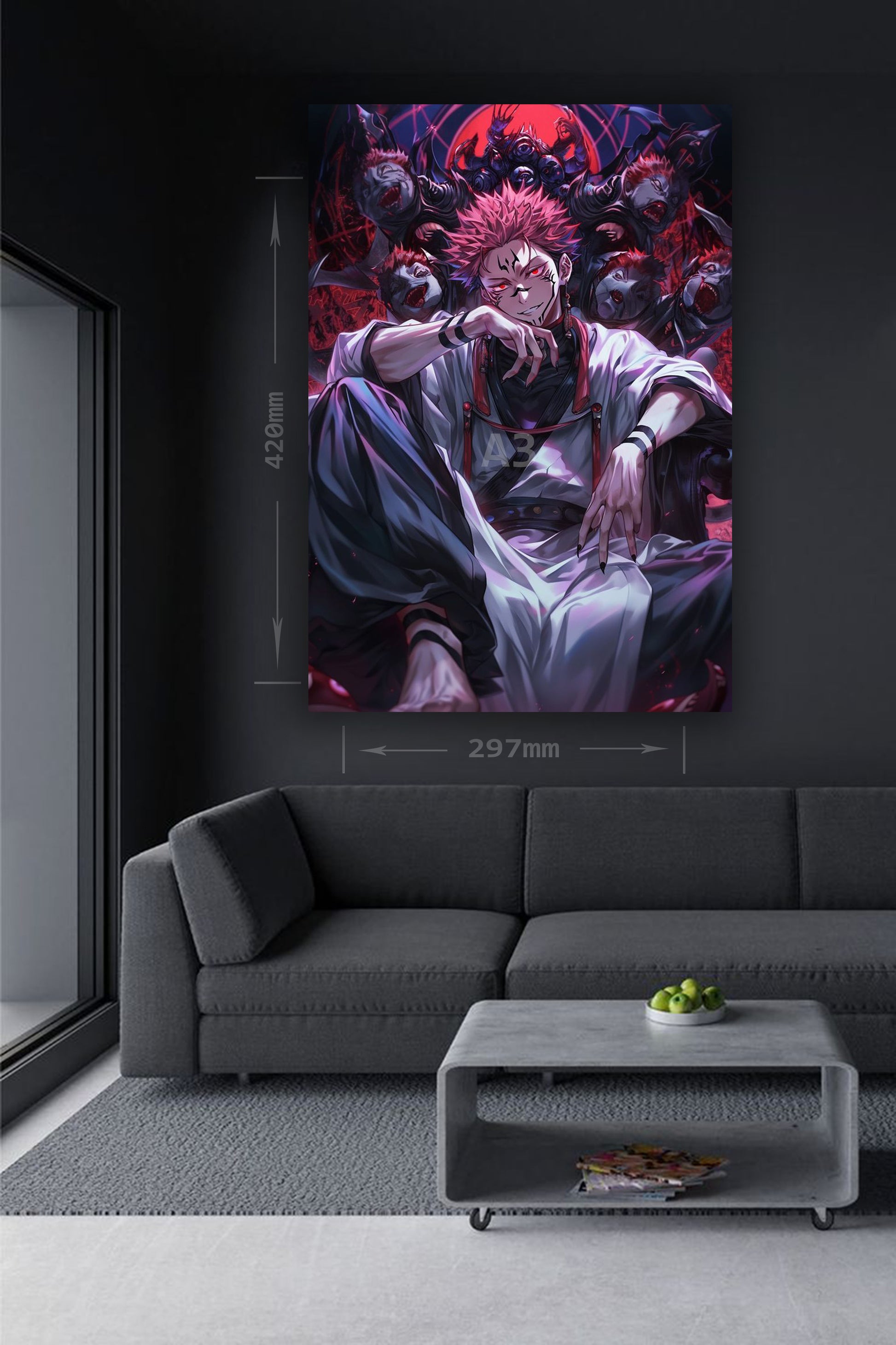 A throne of chaos. A smirk that commands fear. This piece captures the overwhelming presence of the one true King of Curses — Ryomen Sukuna — in all his sinister elegance.